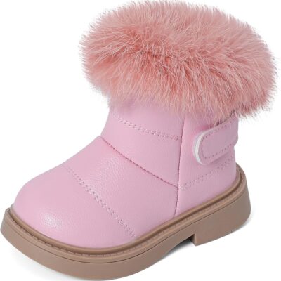 MK MATT KEELY Girls Snow Boots Kids Winter Outdoor Waterproof Boots Toddler Walking Shoes with Anti-Slip Rubber Sole