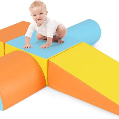 COSTWAY 5 Pieces Baby Climb and Crawl Foam Play Set, Colorful Children’s Educational Software Activity Toys, Soft Climbing Blocks for Toddlers, Preschoolers (Orange+Yellow+Blue)