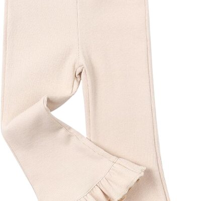 FEOYA Girls Ribbed Flared Leggings Cotton Ruffle Leggings Bell Bottoms Yoga Pants Casual High Waisted for Dance Workout