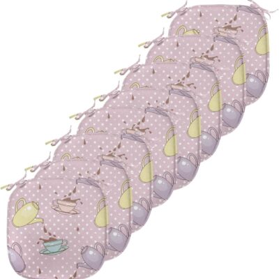Ambesonne Tea Party Chair Seating Cushion Set of 8, Polka Dots Background with Teapots Teacups Retro Cartoon Style, Anti-Slip Seat Padding for Kitchen & Patio, 16″x16″, Pale Green Turquoise