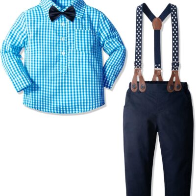 Yilaku Little Boys Gentleman Outfits Suits Set Infant Long Sleeve Shirt+Suspender Pants+Bow Tie Overalls Clothing Set Kids Christmas Colorful Clothes