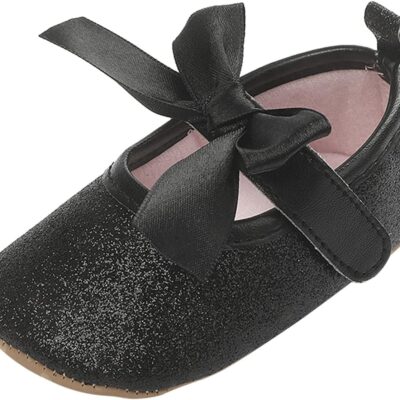 Baby Girls First Walking Shoes with Bowknot Soft Sole Newborn Glitter Loafers Flat Shoes Anti-Slip Princess Wedding Dress Mary Jane Shoes Infant Toddler Prewalker Crib Shoes 0to2 Years