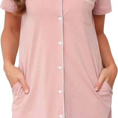 Vlazom Women Soft Nighties V-Neck Button Down Nightdress Classic Boyfriend Style Sleepshirt Relaxed Nightshirt Sleepwear