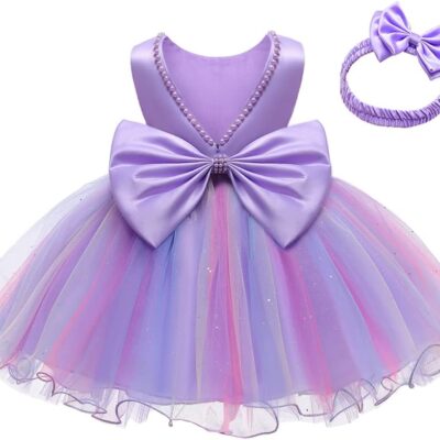 LZH Baby Girls Ruffle Lace Backless with Headwear,Bowknot Flower Dresses Pageant Party Wedding