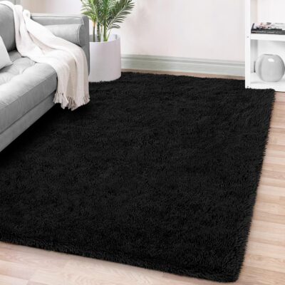 FVVRAX Area Rugs Living Room Rug, Soft Fluffy Shaggy Bedroom Rug Floor Carpet with Durable Anti-slip Backing, Carpets for Kids Girls Dorm Nursery Bedside Rug, 92x153cm, Black
