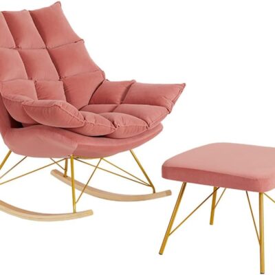 Nursery Rocking Chair Recliner With Ottoman, Nursery Glider Rocker Chair WithVelvet Fabric, Rocking Chair Nursery For Living Room Bedroom(Color:Pink)