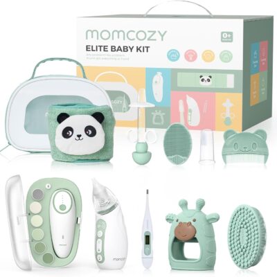Momcozy Elite Baby Kit, Superior Gift Set for Grooming & Health & Cleansing, Include Electric Nail File&Nasal Aspirator, Heated Tummy Wrap,Thermometer,Bath Brush,Teether,Medicine Pacifier,Storage Case