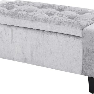 Home Republic Designer Storage Ottoman Bench 92x40cms 2 seater Crushed Velvet Fabric Chest with Lid, Seat, Stool, Window Bench, Chest, Toy Storage Box, Pouffe, Footstool (Silver)