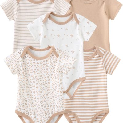 ZAV Unisex Short Sleeve Baby Boy Girl Bodysuits 5-pack Cotton Cartoon Baby Clothes Soft Infant Outfits Baby Shower Gifts