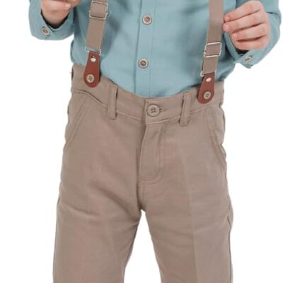 rise&Raba Shirt and Pants Set for Boys | 4-Piece Set Long-Sleeve Shirt, Pants, Suspenders, and Bow Tie | Clothing Sets for Babies and Boys