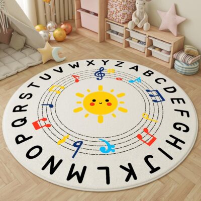ZCVAcom Sun ABC Kids Rug,4ft Washable Non-Slip Nursery Rug for Toddlers, Soft Round Alphabet Rug for Classroom Bedroom Kids Room Décor(Sun CD, Round 40 inch)