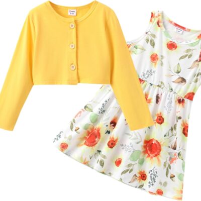 PATPAT Baby Girls Dress and Cardigan Sets 2 PCS Baby Girl Animal Print Dress and Long Sleeve Cardigan Set