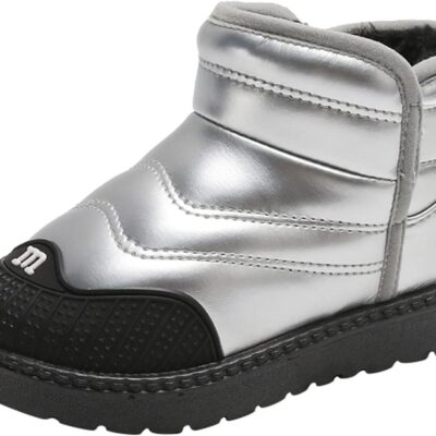 Toddler Boys Girls Snow Boots Baby Boy Fall Warm F𝘂r Lined Boots Winter Wa𝘁erproof Outdoor Ankle Booties Non Slip Shoes for Baby Toddler School Classic 𝗢xford Boots (Silver, 13 Little Child)