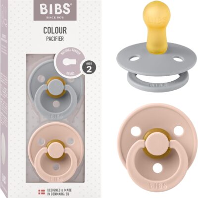 BIBS Colour Soother 2-Pack, BPA Free Dummy Pacifier, Round Nipple. Natural Rubber Latex, Size 2 (6-18 Months), Cloud/Blush