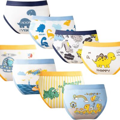 Tolmaiertu Boys Briefs Cotton Soft Dinosaur Printed 8Pack Toddler Boys Briefs Underwear Underpants 3-13 Years