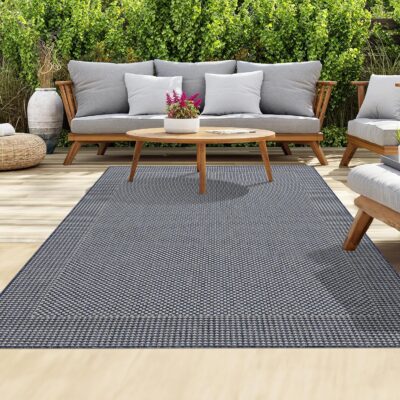 homeart Outdoor Rugs | Easy-Cleaning Indoor & Outdoor Area Rugs for Porch, Deck, Balcony, Garden, Picnic, Kitchen, Hallway | UV & Weather-Resistant Large Patio Rug Mats D.Blue Cream, 180 x 270 cm