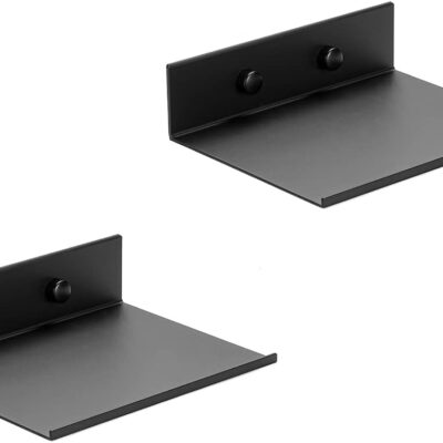 Z metnal Small Floating Shelves, Mini Gloss Metal Shelf for Collection Action Figures, 15cm Decor Disply Wall Shelf, Aluminum, Wall Mounted, Matt Black, 6 inch, 2 Pack