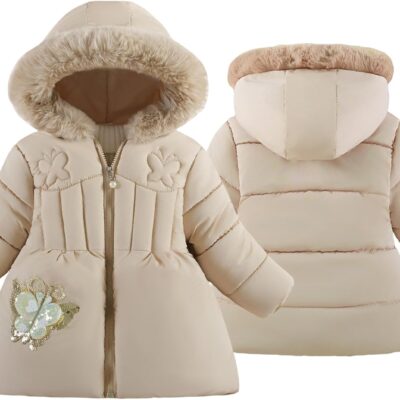 FEOYA Toddler Girls Fleece Line Coat Winter Warm Collar Hooded Puffer Jacket Snow Outwear 1-5T
