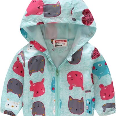 Toddler Kids Baby Boys Girls Cartoon Dinosaur Rainbow Camouflage Zip Windproof Jacket Hooded Trench Lightweight Kids Coats Windbreaker Casual Outerwear Baby Girl Floral Coat (Green, 12-18 Months)