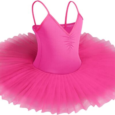 IBAKOM Girls Swan Lake Ballet Dance Tutu Dress V Neck Camisole Leotard Dancewear Ballerina Dancing Costume Gymnastic Spaghetti Strap Sleeveless Dance Outfit
