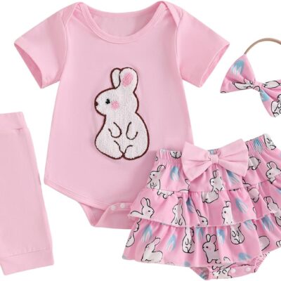 M9ppzzur7 Baby Girls Easter Outfit Carrot/Bunny Embroidery Romper and Ruffle Tutu Shorts Bloomer Shorts + Headband Set Clothes