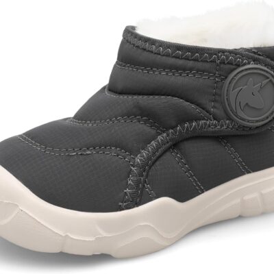 JIASUQI Boys Girls Winter Boots with Faux Fur Lined Toddler Fuzzy Snow Boots Kids Wide Toe Lightweight Winter Shoes for Indoor Outdoor