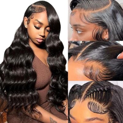 Junemet 13×4 HD Lace Front Wigs Human Hair Wigs for Women 200% Density Body Wave Pre Plucked with Baby Hair Frontal Natural Glueless Brazilian Virgin Real Human Hair Wigs for Black Women 22 Inch