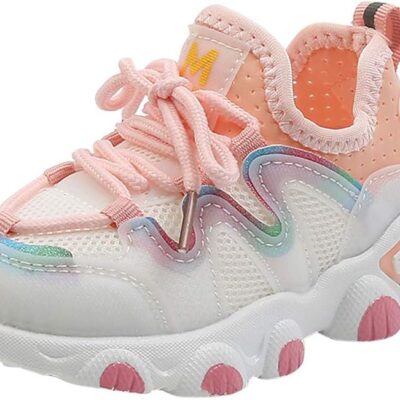 Toddler Baby Girls Trainers Rainbow Lace Up Infant Sneakers for Little Girls Soft Sole First Walking Shoes Mesh Breathable Lightweight Shoes for 1-6 Years
