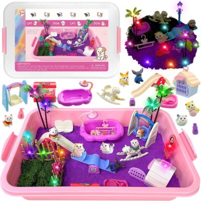 PIIMNT Pet Toys for Kids, Kit Sets with Lights, Cat and Dog Pet Care Toys Sets, Sand Play Sets, Birthday Presents for 3,4,5,6,7,8,9 10 Year Olds