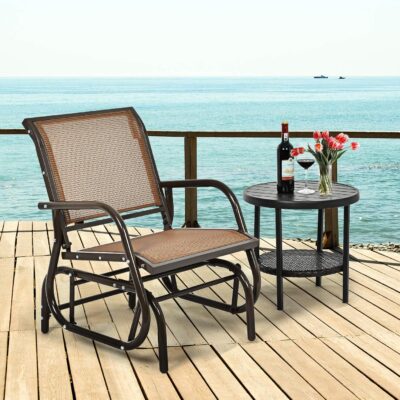 CASART Outdoor Glider Chair, Garden Swing Chair with Sturdy Steel Frame, Single Seat Glider Rocking Chair for Patio, Backyard and Poolside (Brown)
