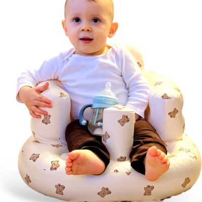 Baby Inflatable Seat for Babies 3-36 Months, Built in Air Pump Infant Back Support Sofa Toddler Chair for Sitting Up, Baby Floor Seater Gifts (Bear Cub)
