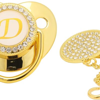 RiToEasysports Baby Pacifiers, Curved Design 26 Letter Pacifier with Clips Golden Baby Pacifier for 6 to 18 Months Baby(D) Milk Powder Feeding