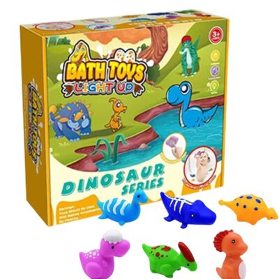 Light Up Dinosaur Bath Toys – Dino Bathtub Toy, 6X Baby Bath Toy | Water Bathtub Shower Pool Bath Flashing Toys, Bathroom Tub Pool Toy For Kids 1-5 Year Olds Boys Girls Baby Shower(6.69×5.12×1.97in)