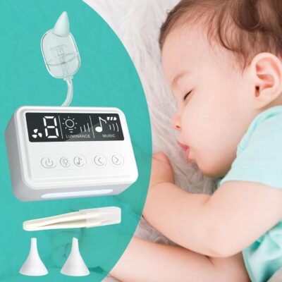 Beuchan Electric Nasal Aspirator for Baby with 9 Level Suction, Grade Baby Nose Sucker, Nursery Rhyme and Night Light Soothing, Safe for Infants and Toddlers,White