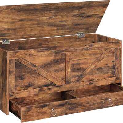 HOOBRO Storage Chest, Wooden Storage Bench, Blanket Storage Box with Drawer, Large Toy Chest, Shoe Storage Bench, Farmhouse Storage Trunk, 100 cm, U-Shaped Opening, Rustic Brown EFG71CW01G1