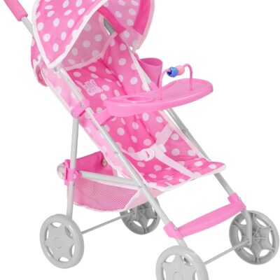 Dolly Tots Playtime Pink Polka Dot Pushchair | Children’s Doll Stroller with Removable Play Tray | Umbrella Fold Baby Doll Stroller Toy | Role Play Dolls Buggy Pushchair for Kids | Ages 3+
