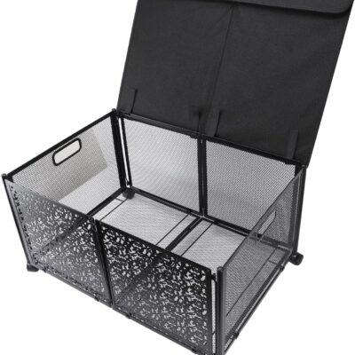 Foldable Toy Storage Box Metal Toy Organizer with Wheels Large 70L Kids Toy Chest Collapsible Toy Storage Bin for Nursery Playroom (Black)