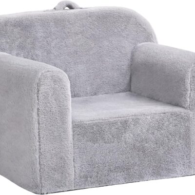 YOTATING Kids Sofa Toddler Chair, Chirldren Couch with Side Pockets with Removable and Washable Cover Carrying Handle Toddler Armrest Chair Kids Read Sofa for Girl or Boy, Plush Grey