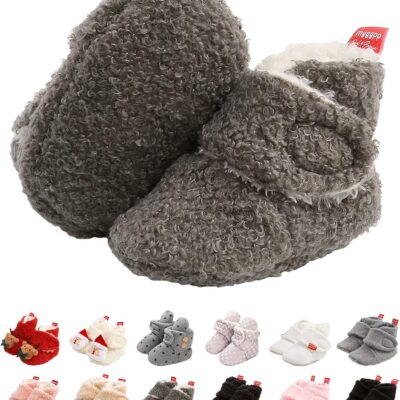 EDOTON Infant Boys Girls Warm Booties, Winter White Cute Soft Cotton Unisex Non-Skid Baby Shoes Christmas First Birthday Gift