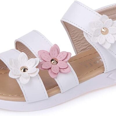 QZBAOSHU Girls Sandals with Pearls Flowers Leather Shoes Sandals for Little Girls