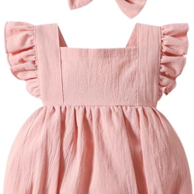 Yanmucy Baby Girls Cotton Rompers Newborn Toddler Ruffle Sleeveless Backless Bodysuit with Headband Summer Baby Overall Outfits 0-18 Months