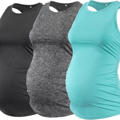 Ecavus 3 Pieces Maternity Tank Tops Sleeveless Racerback Sport Top Pregnancy Athletic Yoga Clothes for Women