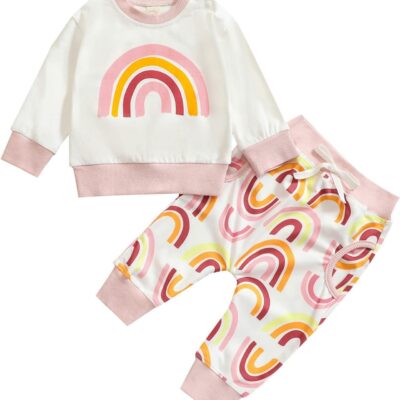 Infant Bloomers 3 6 Months Newborn Infant Baby Girls Cotton Rainbow Autumn Print Long Sleeve Pants Sleepwear Set Clothes Outfit Sweats for Girls