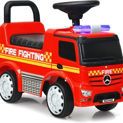 Costzon Ride On Push Car for Toddlers, Licensed Mercedes Benz Sliding Car w/Steering Wheel, Horn, Headlights, Under Seat Storage, Foot-to-Floor Riding Toy for Boys Girls 1-3 Years (Fire Truck, Red)