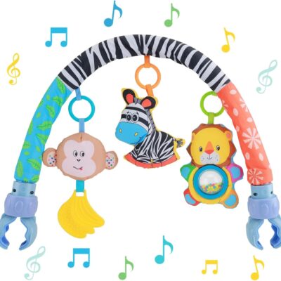 syid Baby Arch Toy Pram – Clip on Cot Activity Bar Musical Sensory Suspension Crib Arch Toy with Rattle Babies Travel Play Arch Pram