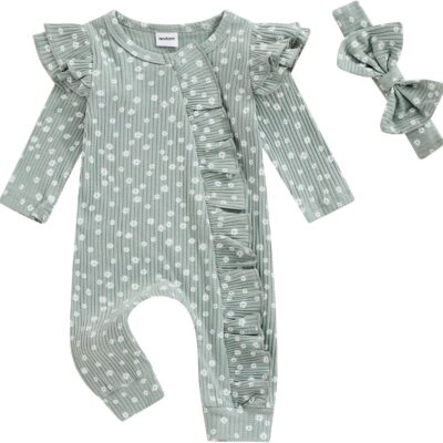 MAHUAOYIXI Toddler Newborn Baby Girl Clothes Long Sleeve Romper Bodysuit Jumpsuit Playsuit Infant Girls Fall Winter Outfits Ruffle Floral Pajamas Sleepsuits Footies With Headband