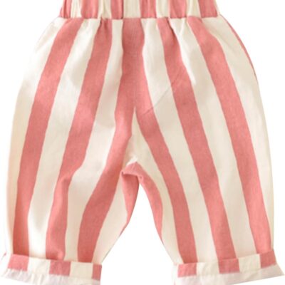 Oyolan Baby Boys Girls Cotton Striped Trousers Casual Ankle Pants Loose Long Bloomers