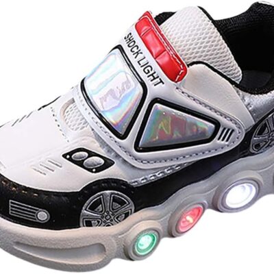 Boys Light Up Trainers Car Slip On Toddler Glitter Sneakers Casual Kids Running Shoes Breathable Soft Flashing Athletic Shoes Lightweight Outdoor