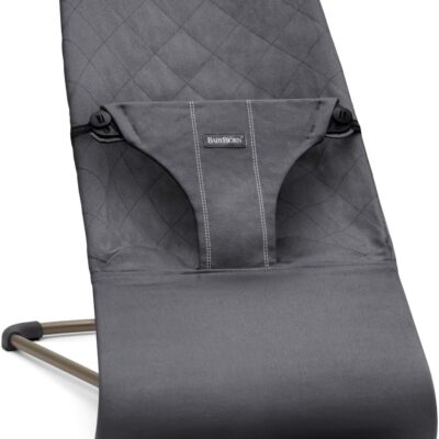 BabyBjörn Bouncer Bliss, Woven, Classic Quilt, Anthracite |Ergonomic, Natural Rocking, 8-9lbs, 0-2 Years, Lightweight, Machine-Washable Cover