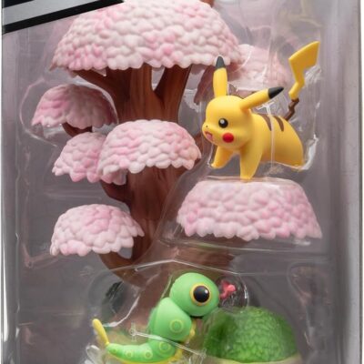 Pokémon PKW3207-15cm Select Set – Blossom Tree with Pikachu and Caterpillar Official Figure Set